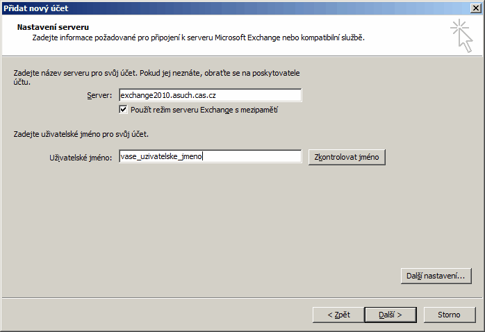 Postup pro nastavení Outlooku 2010/2013 s funkcí "Outlook vždy a všude"